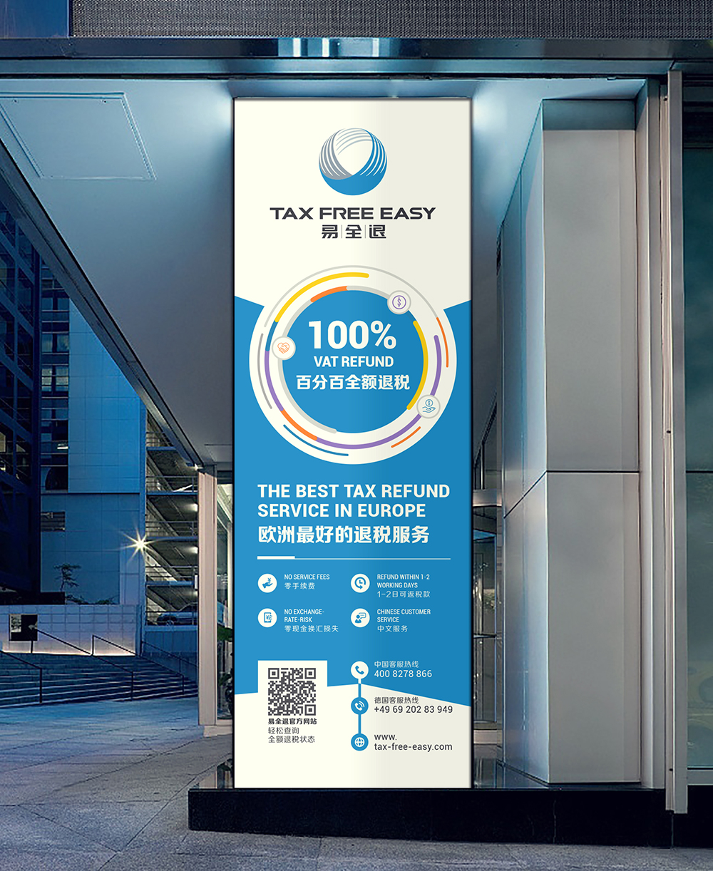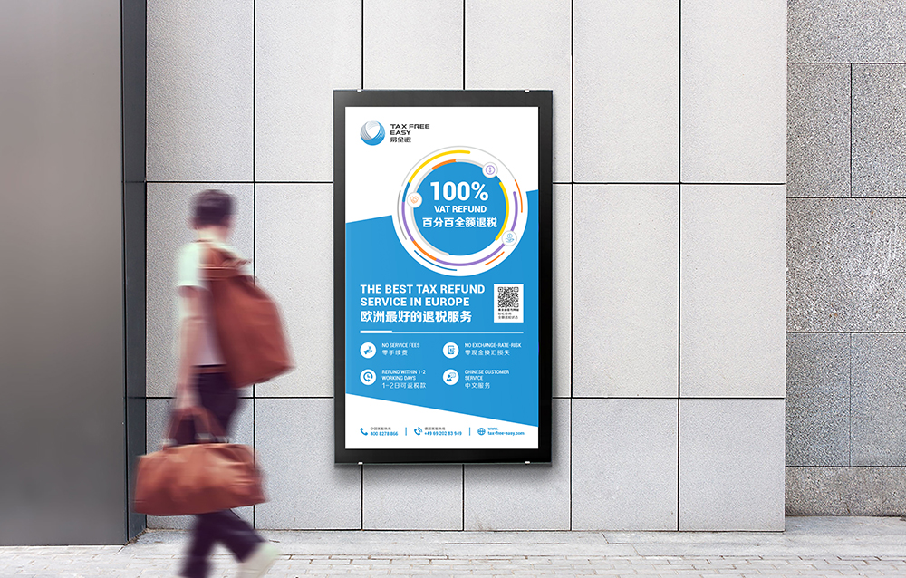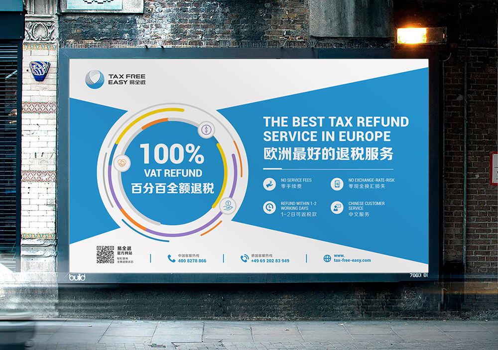 易全退 TAX FREE EASY 是德国易游 TRAVELEASY 公司旗下全额退税服务产品。是欧洲退税金额比例最高,汇率保障最好以及退税流程最快捷的退税服务。同官方合作伙伴支付宝一起,我们致力于为欧洲游客提供最佳的境外消费体验。
