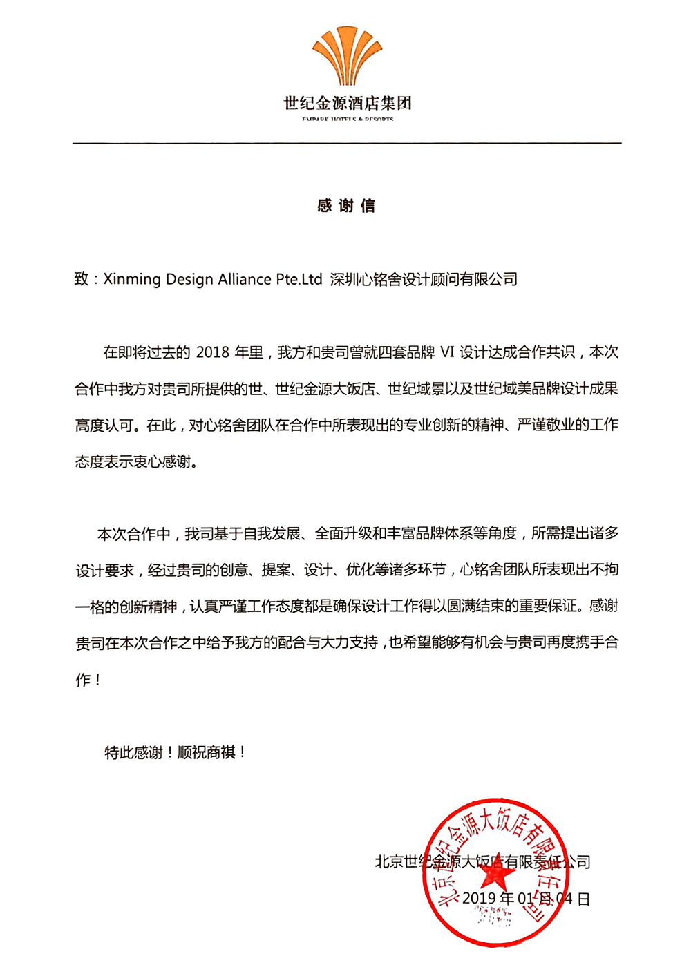 世纪金源酒店集团,中国酒店管理集团30强,以其“自主设计、自主建造、自主经营、自主管理”的独创运营模式和“以情服务、用心做事”的企业理念赢得了宾客的青睐和社会各界的广泛赞誉。集团旗下拥有五星级酒店20家,客房总数达到10000余间套,遍及北京、西安、合肥、重庆、长沙、福州、福州贵安、福州罗源、贵阳、宁波、昆明、腾冲、西双版纳等城市地区,形成了品牌化、连锁化、规模化的发展模式。集团用细致殷勤的专业服务,为宾客带来宾至如归的温馨感受,提供更多与众不同的品质服务与全新的美好体验。公司以“务实高效,开拓进取”为企业精神,务求使宾客无论下榻哪一家世纪金源酒店,都能体验始终如一的世纪金源品质,尽享殷切贴心的世纪金源关怀。2017年,以下为世纪金源集团委托心铭舍打造的世纪金源大饭店VI视觉升级系统。