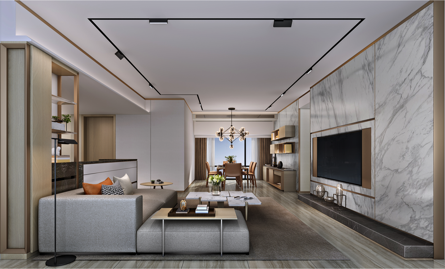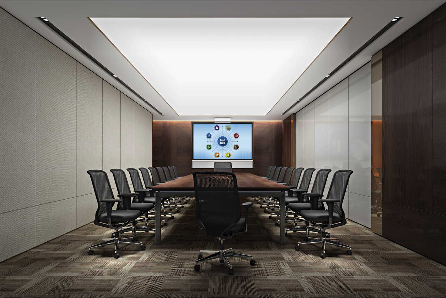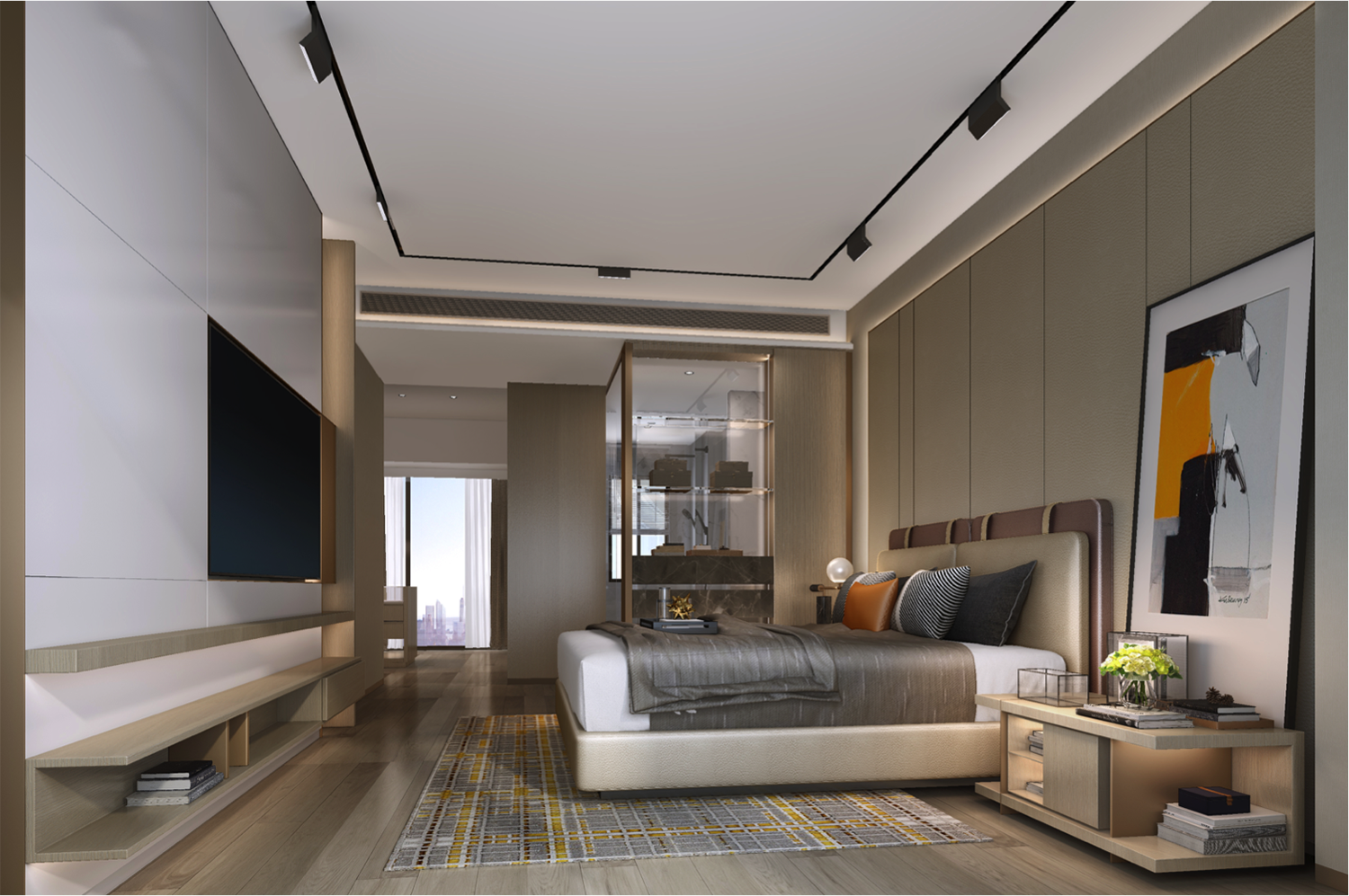 本项目为金融投资公司的办公空间,空间上体现企业精神和企业文化,简约现代并带有一点轻奢的空间语言,诠释办公空间的需求和金融公司的企业品质。空间一些功能的巧妙设置加强了办公的高效性,办公智能化的运用让企业与世界和未来的距离逐渐缩短,让企业更好地去适应市场多元化的需求。
