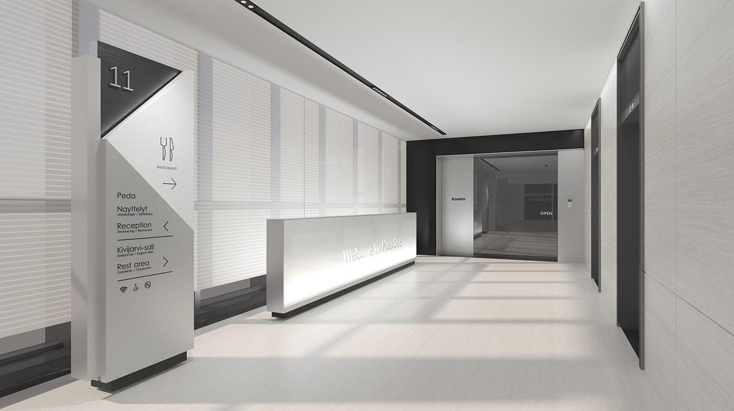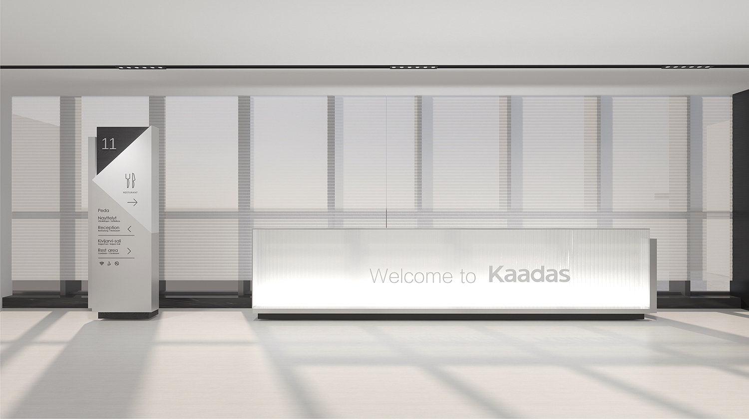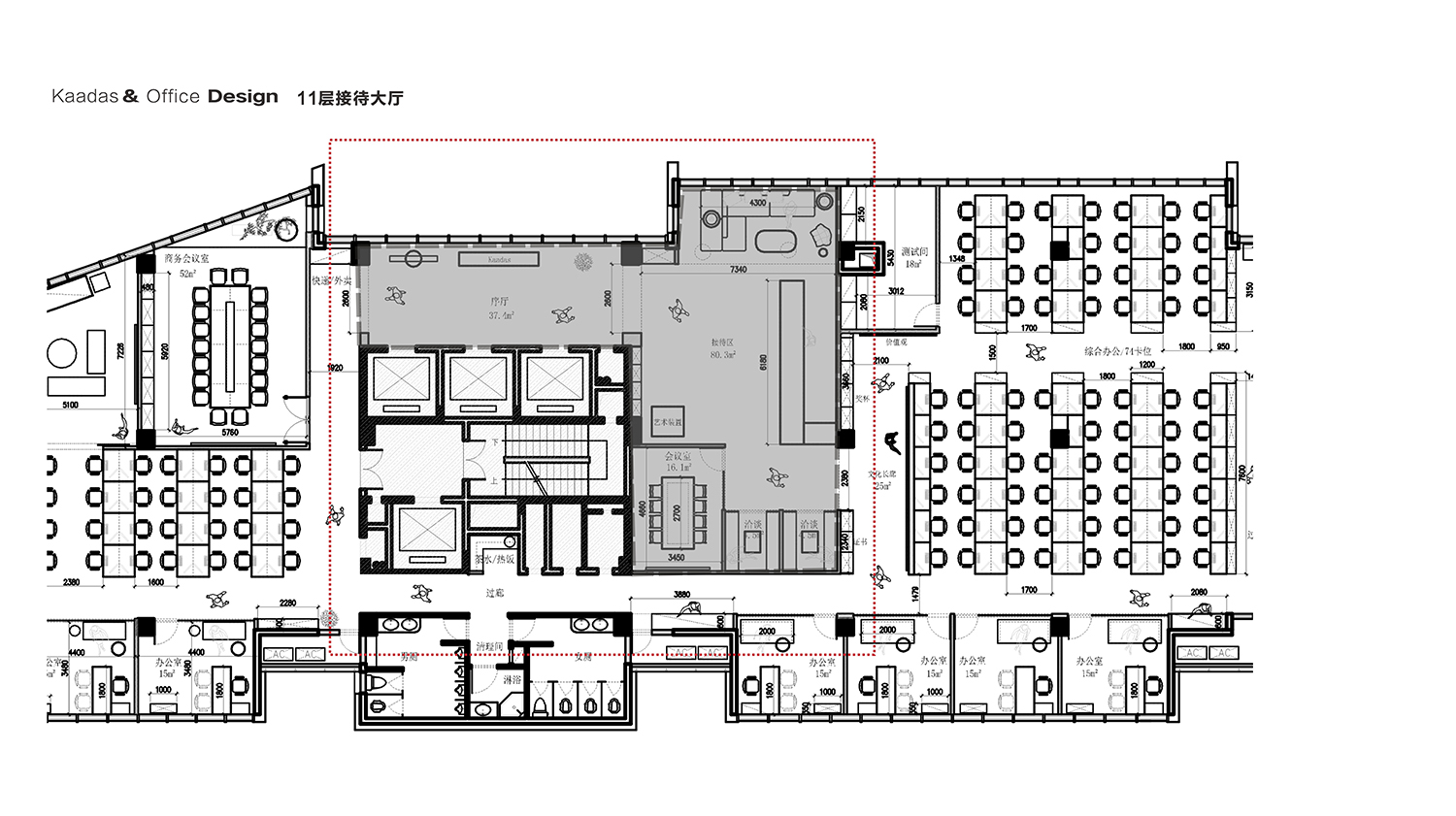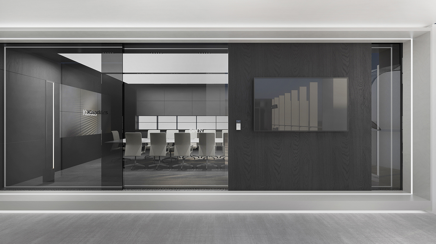 Kaadas凯迪仕作为一家专注于智能锁领域的全产业链公司,我们的设计理念旨在突显科技感、创新性,同时融入国际化的氛围。通过灰色和银色的极简色调,打造一个现代化、品质感极强的办公空间。