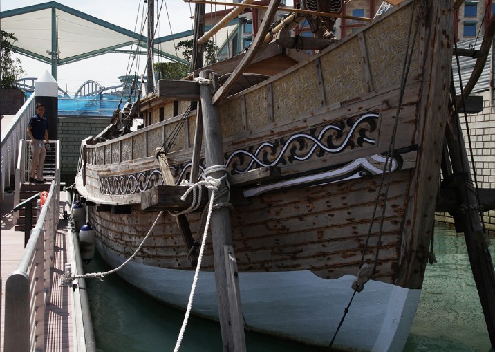 新加坡(Maritime Experiential Museum & Aquarium,MEMA),坐落于圣淘沙名胜世界海滨坊的新加坡海事博物馆及水族馆,以 别具创意角度体验宝贵历史的最佳首航起点,而丰富的馆藏,则展出400多件珍稀文物,让您一次看尽整个光辉灿烂的亚洲海事史。步入馆内,映入眼帘的就是一 艘的巨大“宝船”。原来,这就是按实际尺寸同比复制,承载过著名传奇航海家--郑和的寻宝船舰。据说,伴随着这艘巨型宝船的,是三、四十艘载着供应整支探险队物资的中型船舰,负责承载所需的军马、军火、战舰、食水及油供等,让探险团队得以在船上自给自足。