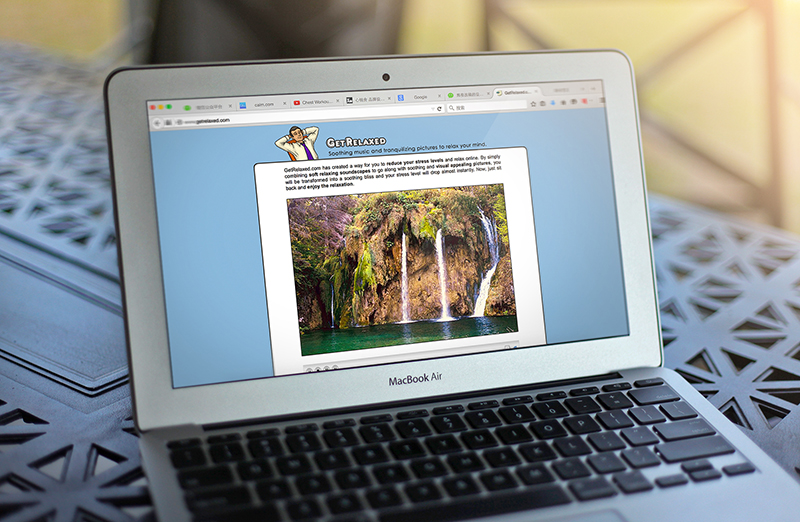 如果两分钟不足以让你彻底放松,试试这个。如下图,打开网站后,头枕着双手往后仰,欣赏自然风光,聆听网站为你精心挑选的音乐。图像3秒一换,有15种,每种持续大概2 – 4分钟,现在,开始吧!提醒:网站有简陋广告,稍微影响体验。