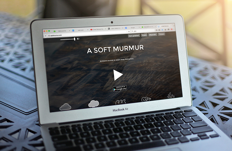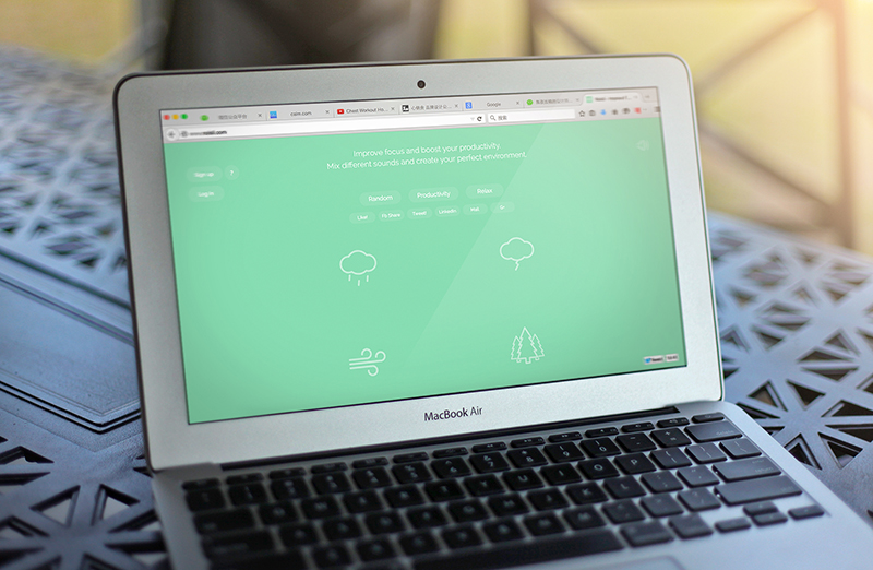 网站一进去,有3个关键词:放松、专注、逃离。的确,它成功做到了这一点。它有10种不同的声音帮助你放松心情,也可以混合使用。不同的声音对应不同的背景,网站非常有设计感,相信你会重新回来体验一次。