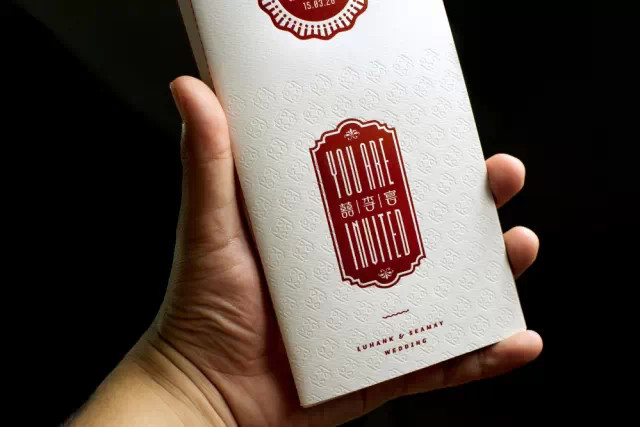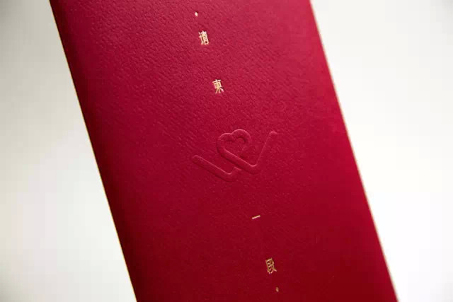 设计行业里有一句话,“实现是检验设计好坏的唯一标准”,在请柬的设计中,标志与辅助图形贯穿始终,通过压纹工艺展现出来,这些让人倍感亲切的设计细节来自于材质的质感与精美的印刷工艺,让拿到请柬的人感受到设计师满满的心意。