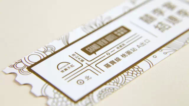 Lee:正式的请柬页我设计以入场券的形式,下方是能够撕下来的票根,意在让来宾“凭票入场”,既增添了趣味性,也增加了来宾的参与感。