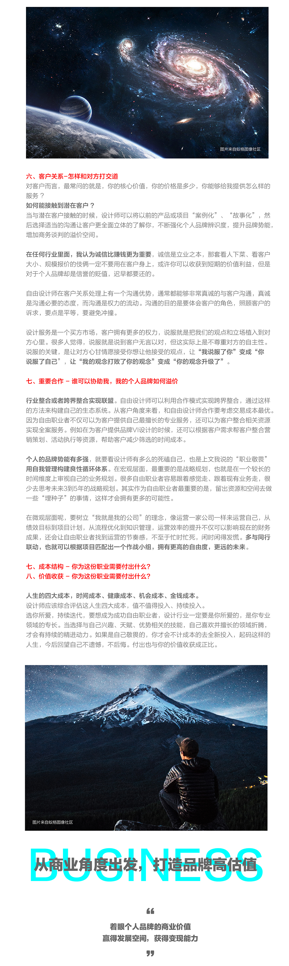 建立个人品牌有助于结识理想的合作伙伴,发展合适的合作项目,是打开发展机遇大门的钥匙。我举个例子,不一定恰当,但却容易理解,个人品牌比作宇宙中的一个恒星体,虽然自带能量与光芒但却影响力微小,当两个恒星体(个人品牌)相撞时,会产生引力波,形成一颗更大的新恒星体,质量更大,能量也更大,焕发出新的生命。“明星企业”更像是一个黑洞,是由很多的个人品牌共建后裂变而成,当形成黑洞后,也就意味着企业对各种优质社会资源拥有了更强的吸附力,就好似黑洞效应。大者俞大,强者恒强。