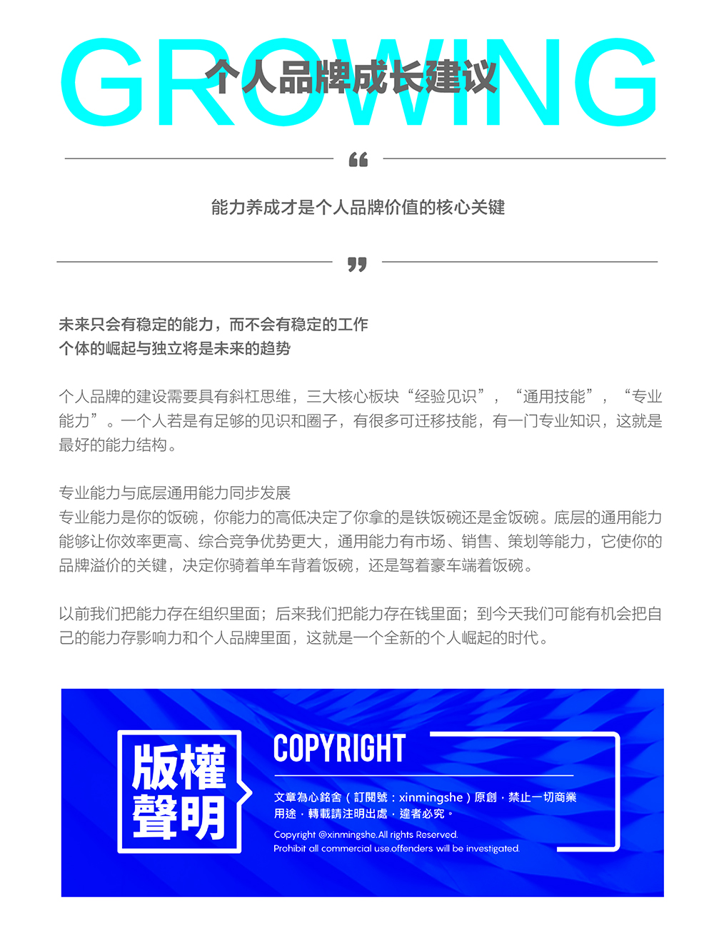 这是一个自品牌时代,每个人都是一个独立的品牌,有的个体品牌影响力大,有的影响力小,这完全取决于你自己,因为你就是自己品牌的CEO和总设计师。