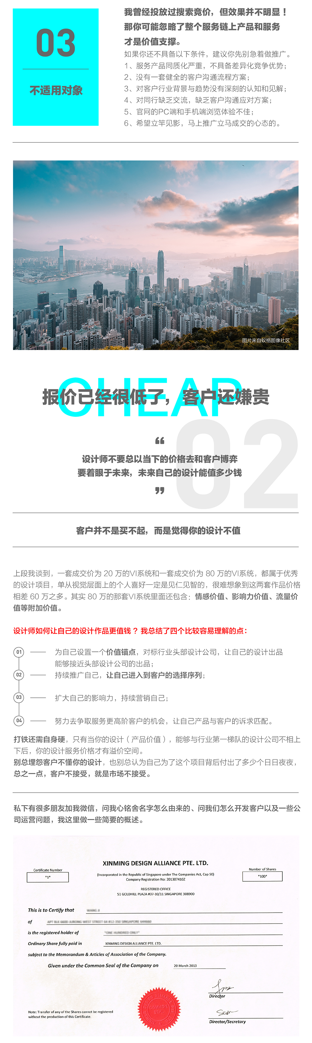 我们2013年成立于新加坡,注册名称 Xinming Design Alliance Pte.Ltd 中文译为“心铭设计联盟有限公司”,2014年在深圳成立全资子公司,“心铭设计联盟有限公司”就是公司的定位、10年发展规划、商业模式。