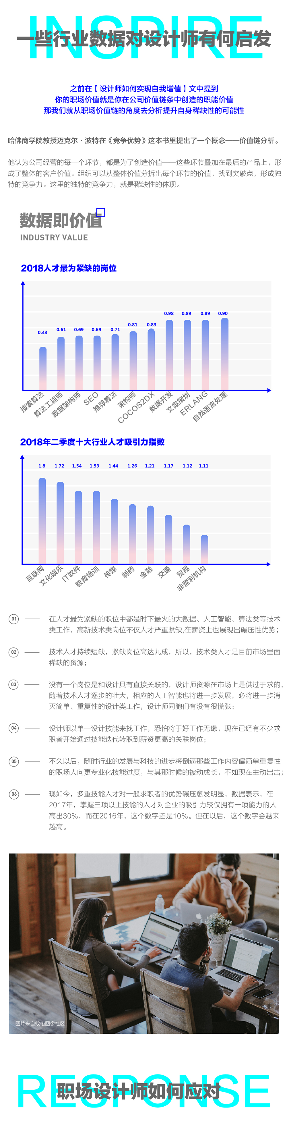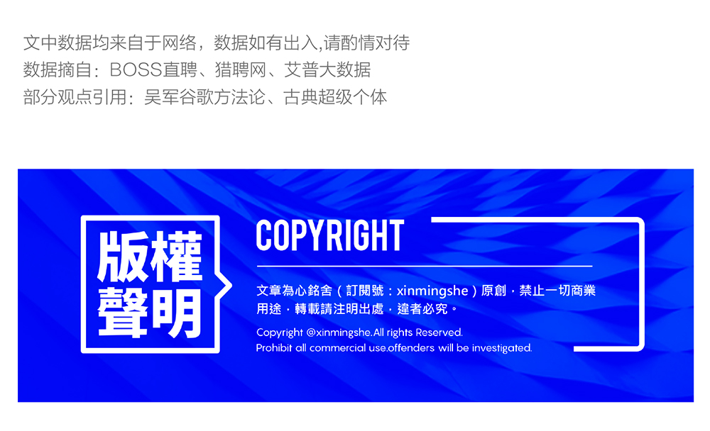 之所以引用这么多行业数据,是因为大多数设计师不太关注除自己行业之外的整个大环境的发展动态。在自己职业路径的规划上就会比较狭窄,甚至进入死胡同。