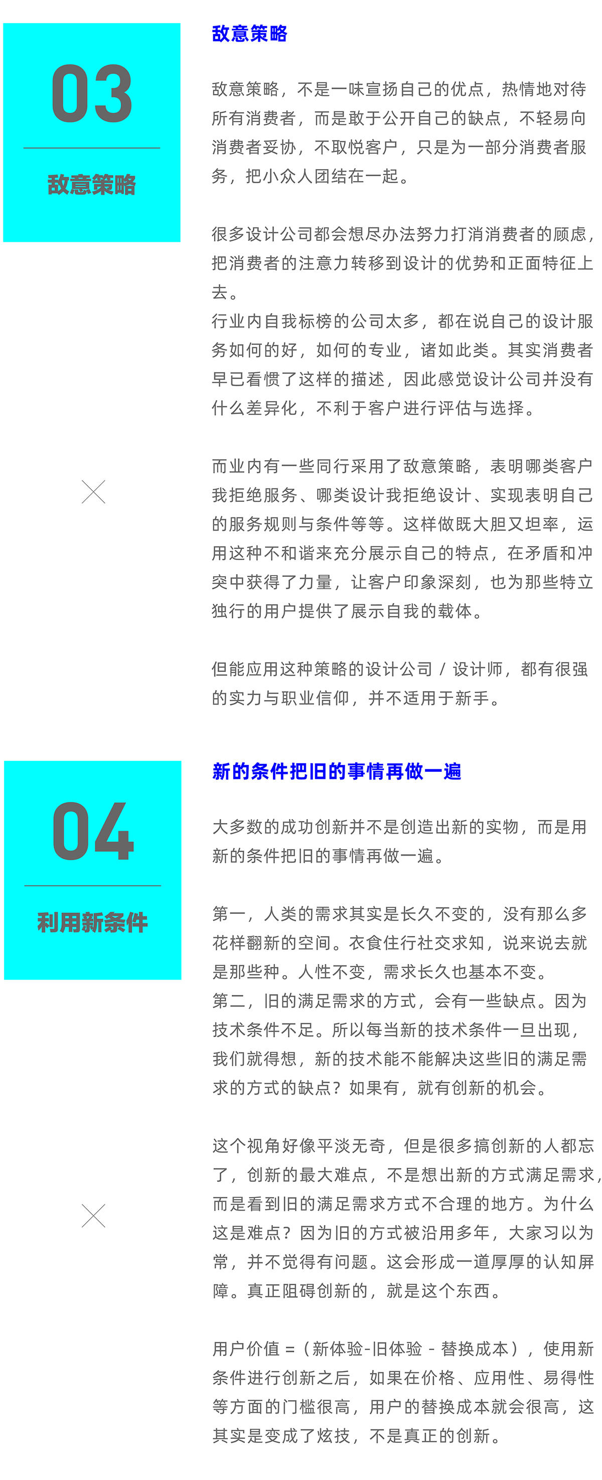 创新就是生产力,从0到1是往往最难的,设计师不仅可以思考设计上的创新,还可以思考服务上的创新、流程上的创新、模式上的创新,只要能够提升设计实效性,任何创新都是有价值的。