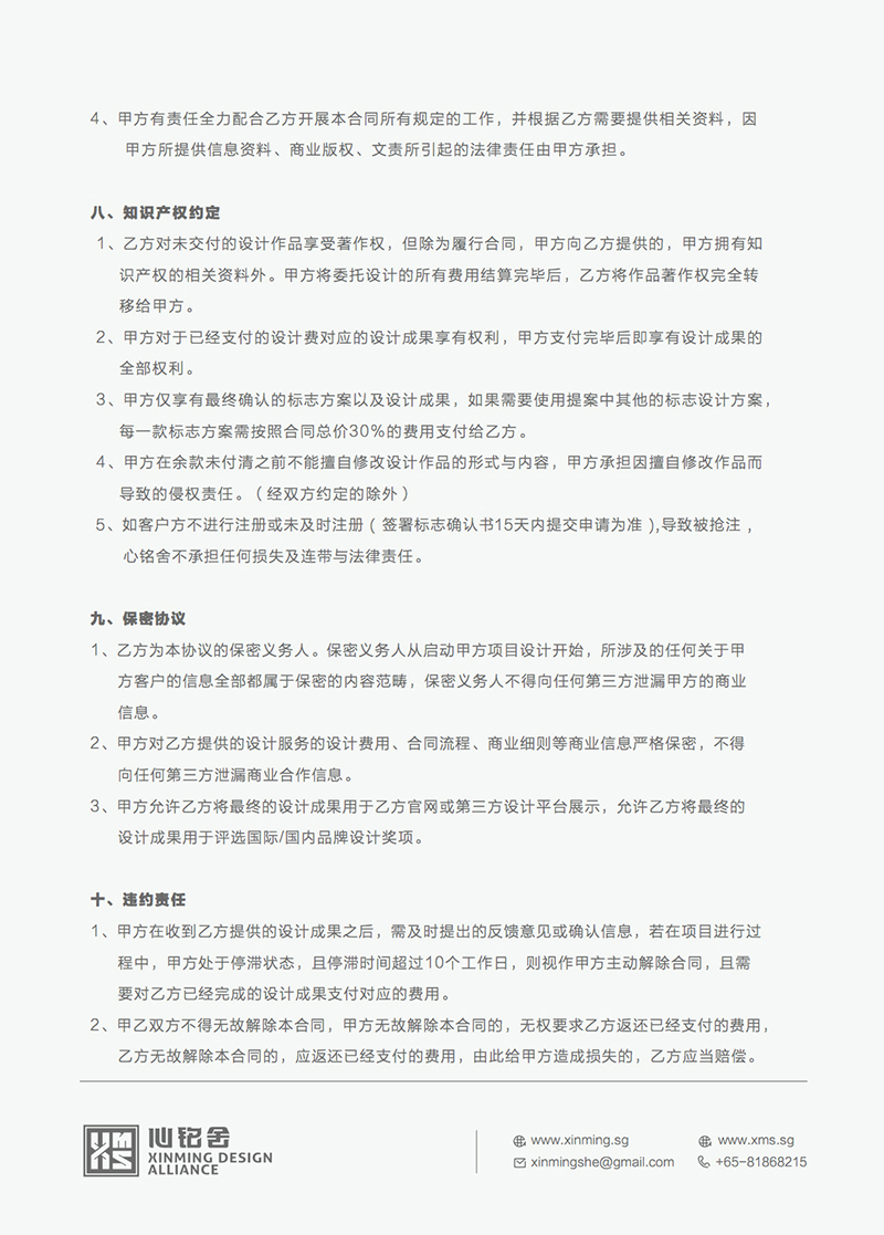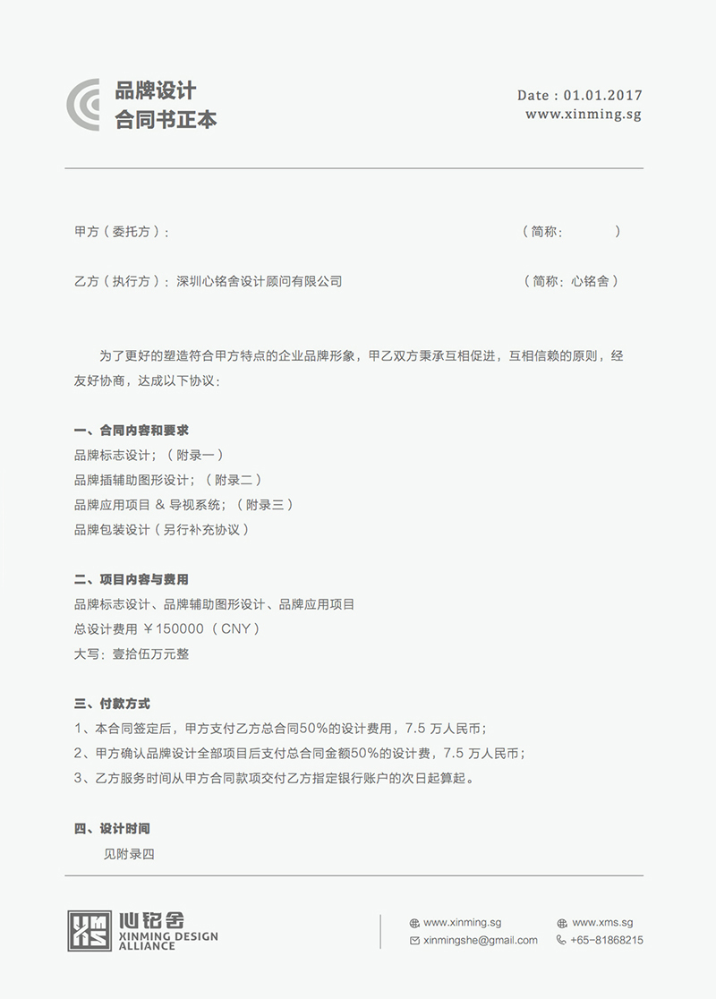 心铭舍是2013年创立于新加坡一所创新型视觉文化传播机构,公司注册名称“XINMING DESIGN ALLIANCE PTE LTD”,专业从事企业品牌(BTS)、企业文化(CCS)、企业形象(CIS)的系统策划、设计和咨询。公司由多位外资4A广告公司资深人士发起成立,以创建百年品牌为梦想,在品牌创建与市场策划层面具有国际领先的视野和方法论。2014年心铭舍在深圳成立了全资子公司,公司注册名称“深圳心铭舍设计顾问有限公司”,心铭舍设计业务覆盖东南亚地区,我们致力于帮助客户设计可持续生长的具有全局观的品牌体验。