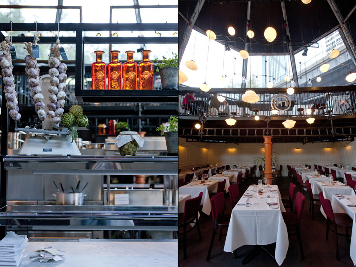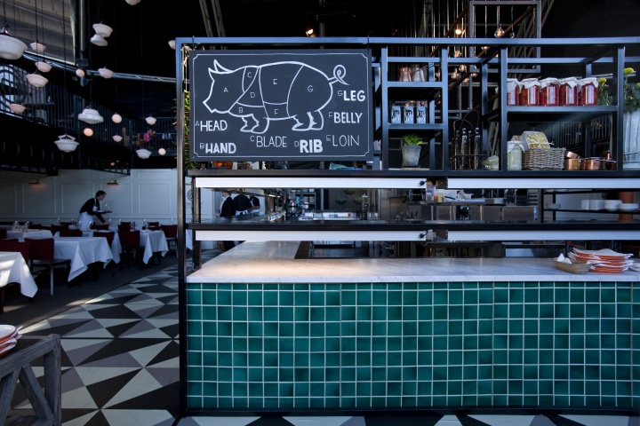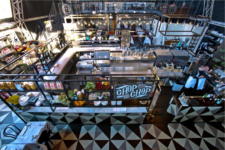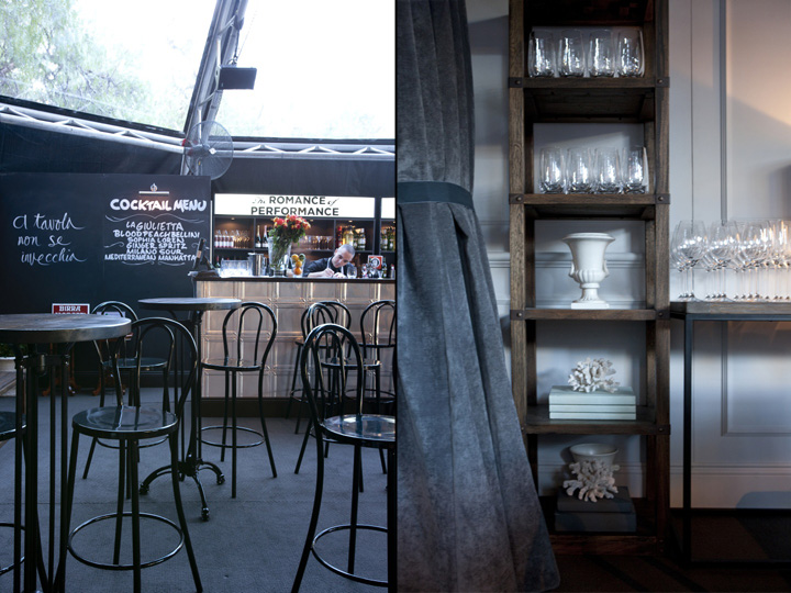 在整个空间里随处可见到老式玻璃瓶和药剂师罐子展示着新鲜的食材,复古意大利陶瓷的绿化,提高了用餐者的情绪,