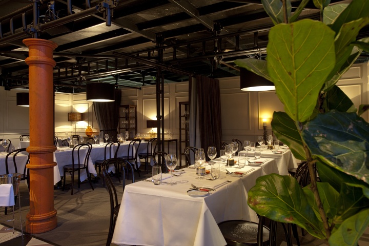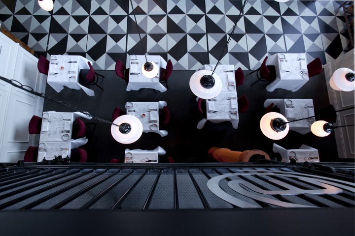 这是一个具有城市风情的餐厅,设计灵感来自维多利亚亭台楼阁,设计上运用了黑色,白色和冷灰色的混合,并加上几何
