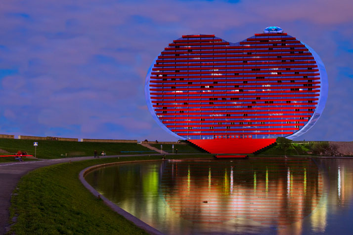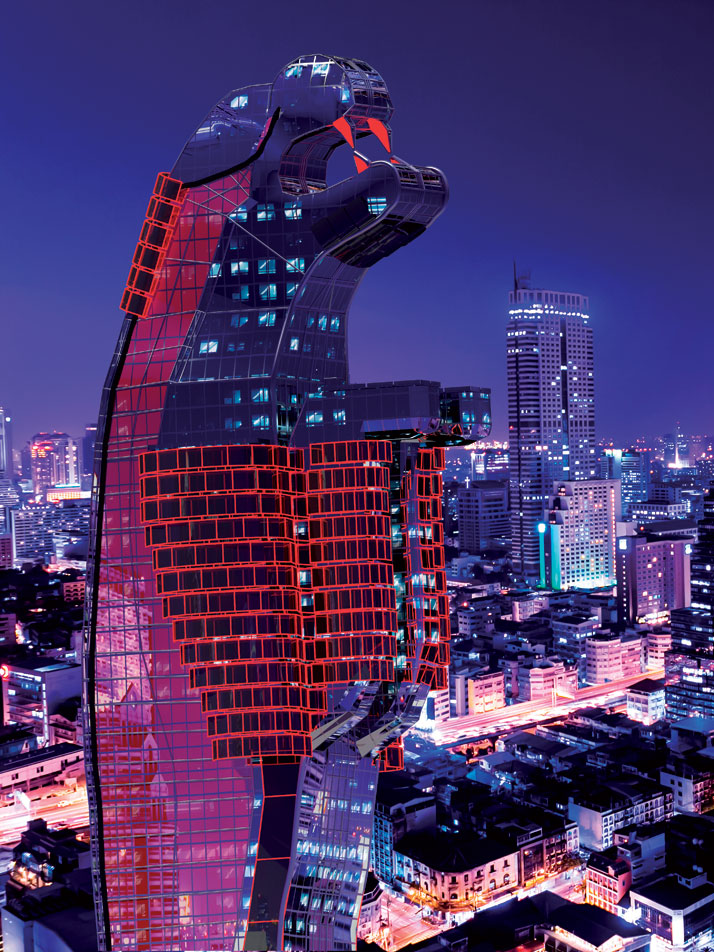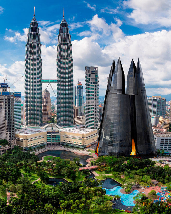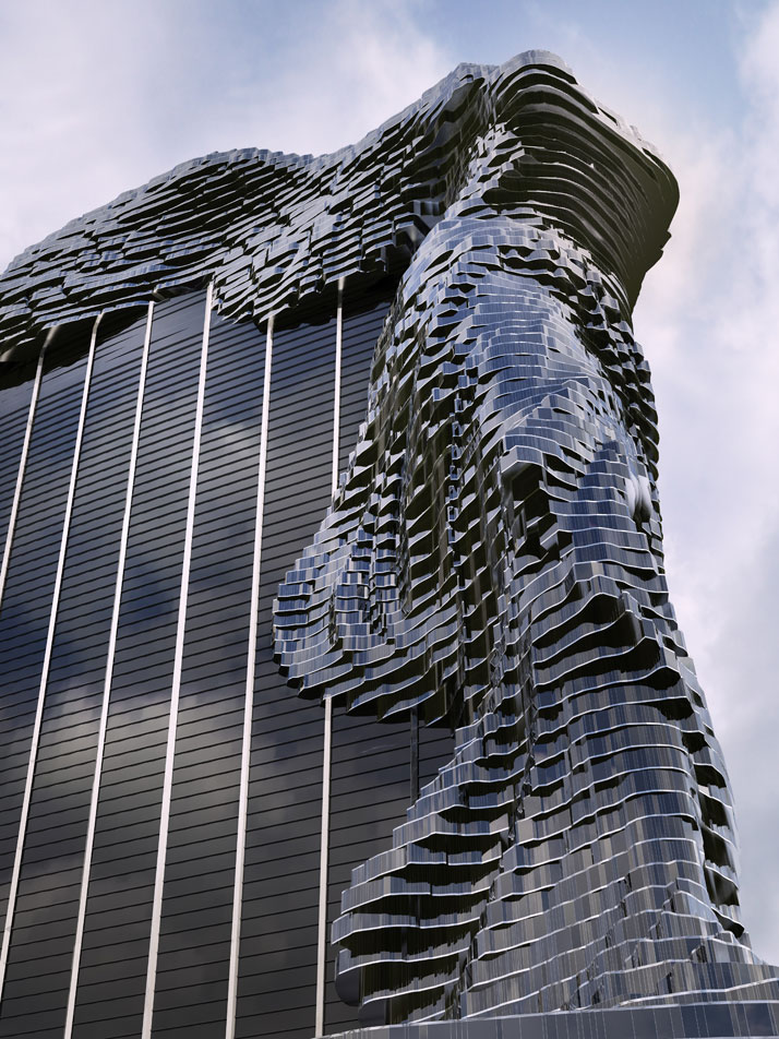 全世界建设摩天大楼已经进入疯狂的阶段,各个城市都在争夺最高地标的称号(据说高达千米的建筑体正在建设当中,它将记录这个时代),瓦西里现年三十七岁,在过去的一年时间里一直在进行建筑概念架构项目的工作,他们设想在城市中架设更具代表性的摩天大楼和标志性建筑。他与小伙伴们开始绘制不同的建筑物原型,想出了许多雄心勃勃的标志性建筑物,在不同的城市中创造最令人印象深刻的和美丽的建筑地标。而他坚定的信念是,“ 每一个建筑都应该是严肃的,除了有一个设计概念外,更应该有自己的故事或传说。 ”