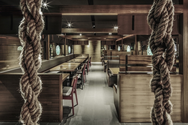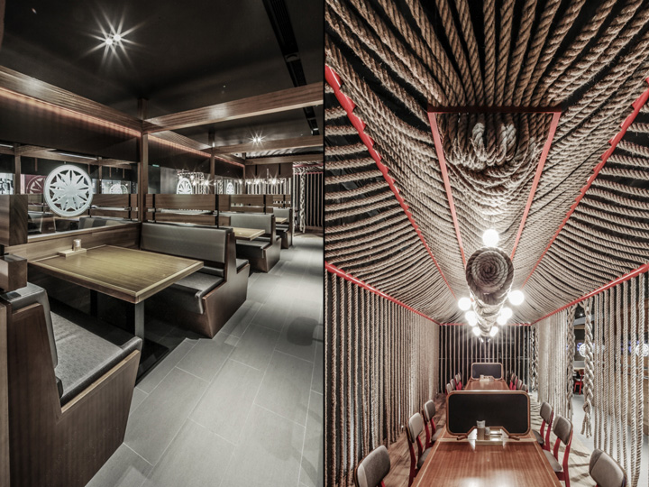 逼格爆表的主题店设计-品牌设计 丰富的层次感和空间之间有着非常明显的关系,设计借鉴了红色和木材的颜色为设计的主要元素,缀以航海风格的窗帘绳从天花板上悬挂到地面增添了一丝现代的优雅。朱红色的窗帘绳沿着楼梯和圆柱灯箱浮动用以欢迎客人。 设计传达纯度和设计元素具有诚信意识,集中体现了传统建筑的复杂性,内饰体现了现代人的审美,同时还拥抱的舒适感,甚至表达着一种异国的情调和神秘感。 品牌设计公司 心铭舍 VI设计公司