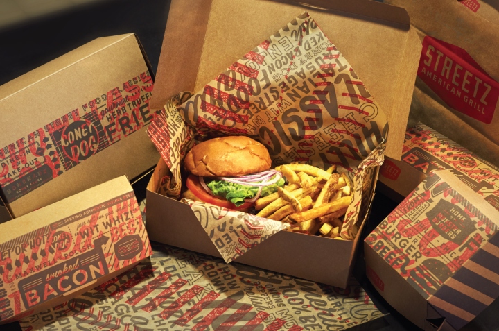 VI设计-快餐餐厅形象 Streetz是一个快速服务餐厅,该品牌VI设计采用印刷纹理来进行消息传达。材料和简单的建筑细节定义了一个友好的环境。这种“份试剂盒”是用来开发独特的外观和感觉,在每个位置,与不同的建筑结构中。怪物汉堡、芝加哥狗、松露薯条,菜单项目应有尽有。菜单选项都简单明了,加快选择和排序。品牌设计应用到了工作服,帽子和服装零售、包装和衬垫,Streetz是一个非常纯粹品牌结构。 VI设计