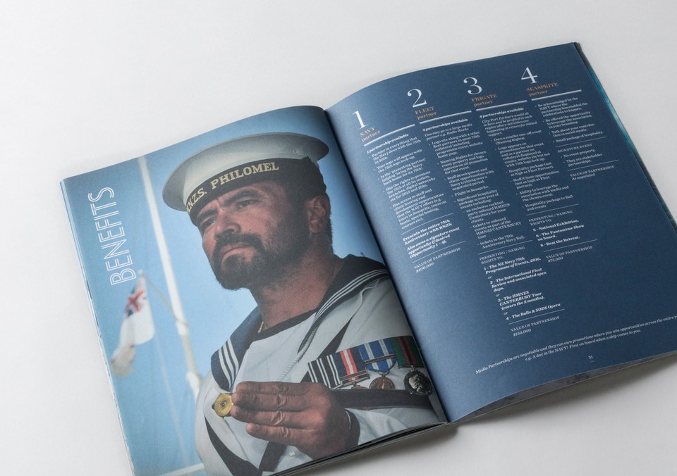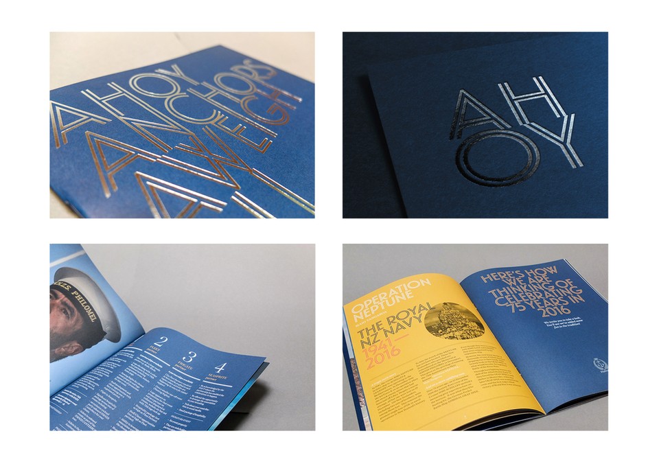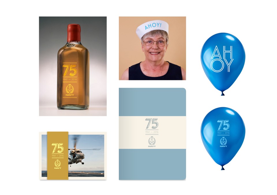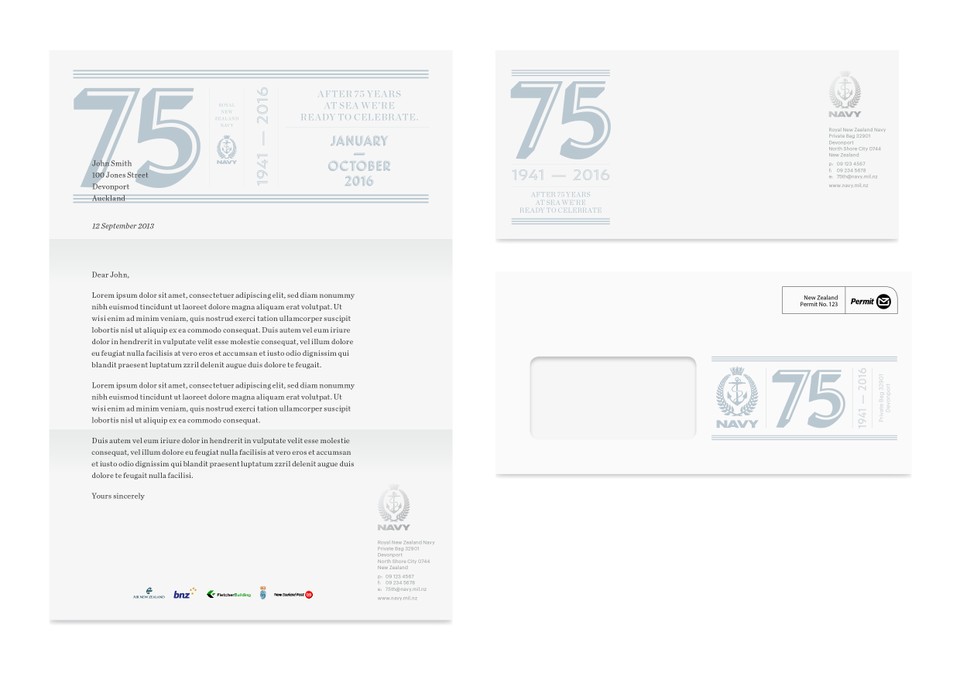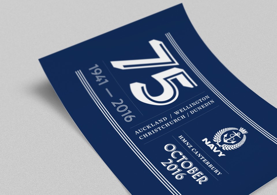 新西兰皇家海军VI设计 心铭舍:新西兰皇家海军75周年,大字母大主题与简约的排版,彰显了新西兰海军的皇家气质,蓝色的大背景作为主题烘托,粗中有细,严谨细致的排版让平面设计的视觉效果具备了严肃性与军魂气质。 品牌设计,VI设计公司,心铭舍,品牌设计公司