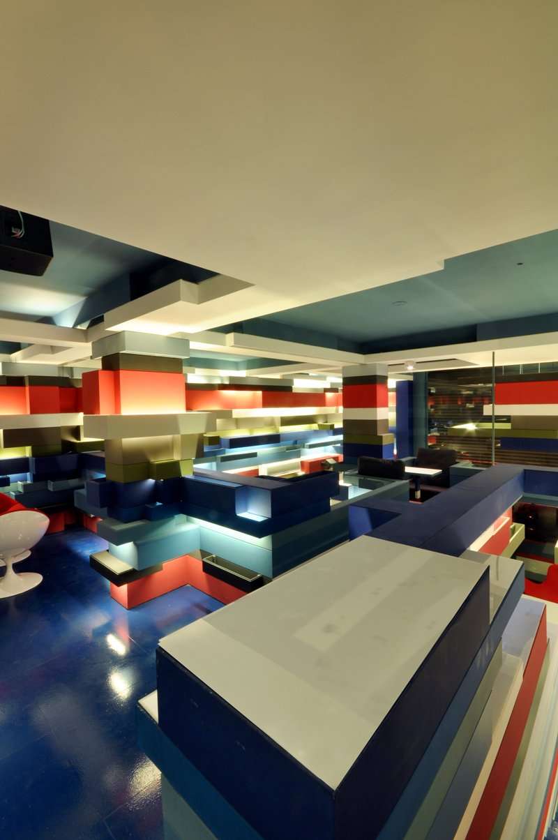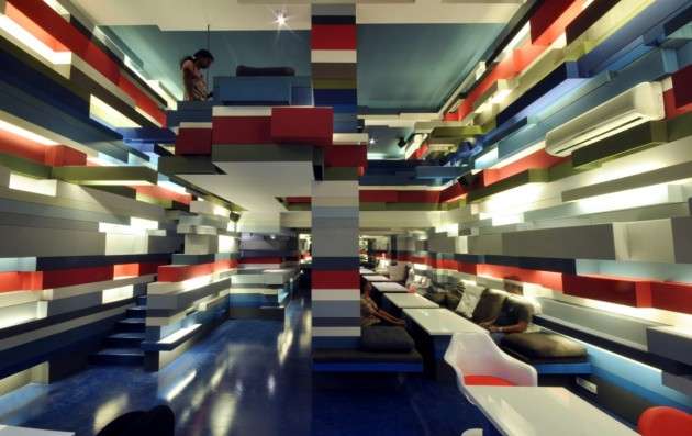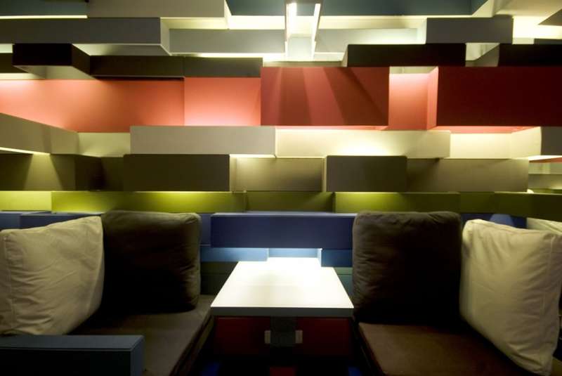咖啡店设计 摩卡咖啡馆看起来可能不像一个传统的咖啡馆,因为其空间拥有鲜艳的层次感。事实上它看起来更像一个儿童游乐区,灵感来自于经典LEGO积木。摩卡咖啡馆Mojo位于印度钦奈,明亮而大胆的设计,利用丰富的纹饰在光线和色彩下把我们带到一个基本和纯形式的60年代和70年代的时空。 品牌设计,咖啡店设计,VI设计公司,心铭舍,品牌设计公司
