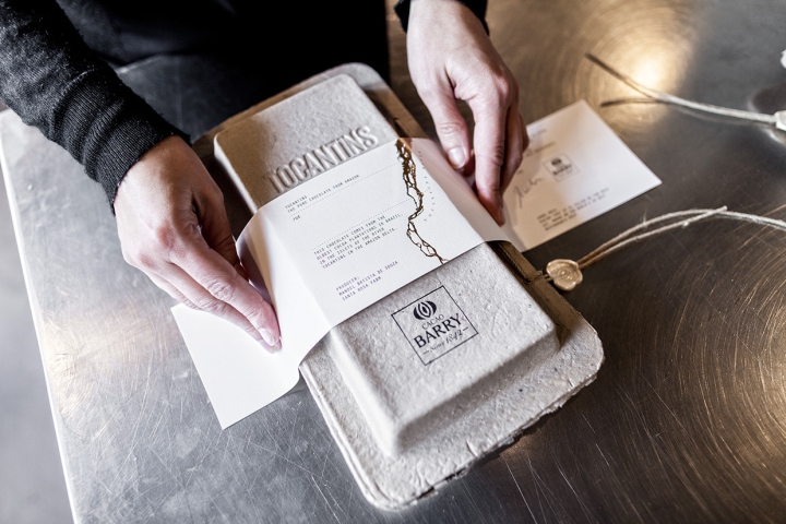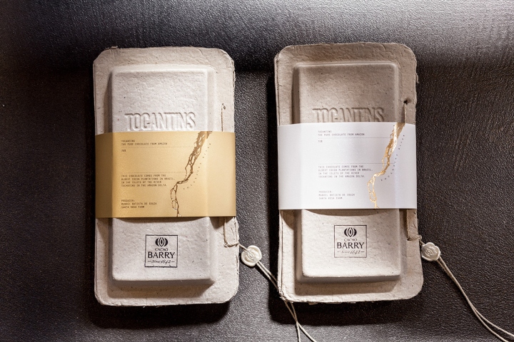 巧克力包装设计 托坎廷斯是来自亚马逊河三角洲小可可种植园巧克力。这里是一个小产区,生产量非常有限,生产出来的成品只保留给“世界50最佳餐厅”。该包装是有再生纸作为外壳包装,并采用精索捆绑并封蜡,包装唤起了最本源的品牌精表达。 品牌设计,包装设计