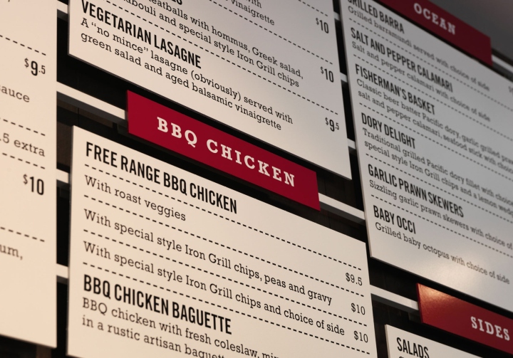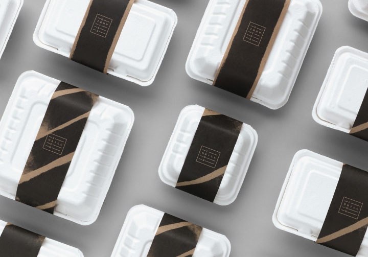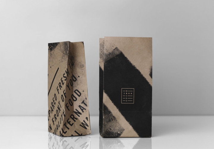 该餐厅品牌标志是一种烤架表现形式,并通过使用图形的叠加形成了格栅效果,视觉效果表述着身份,包装反映了这种自然、干净的精神气质,采用的朴实原材料完成。