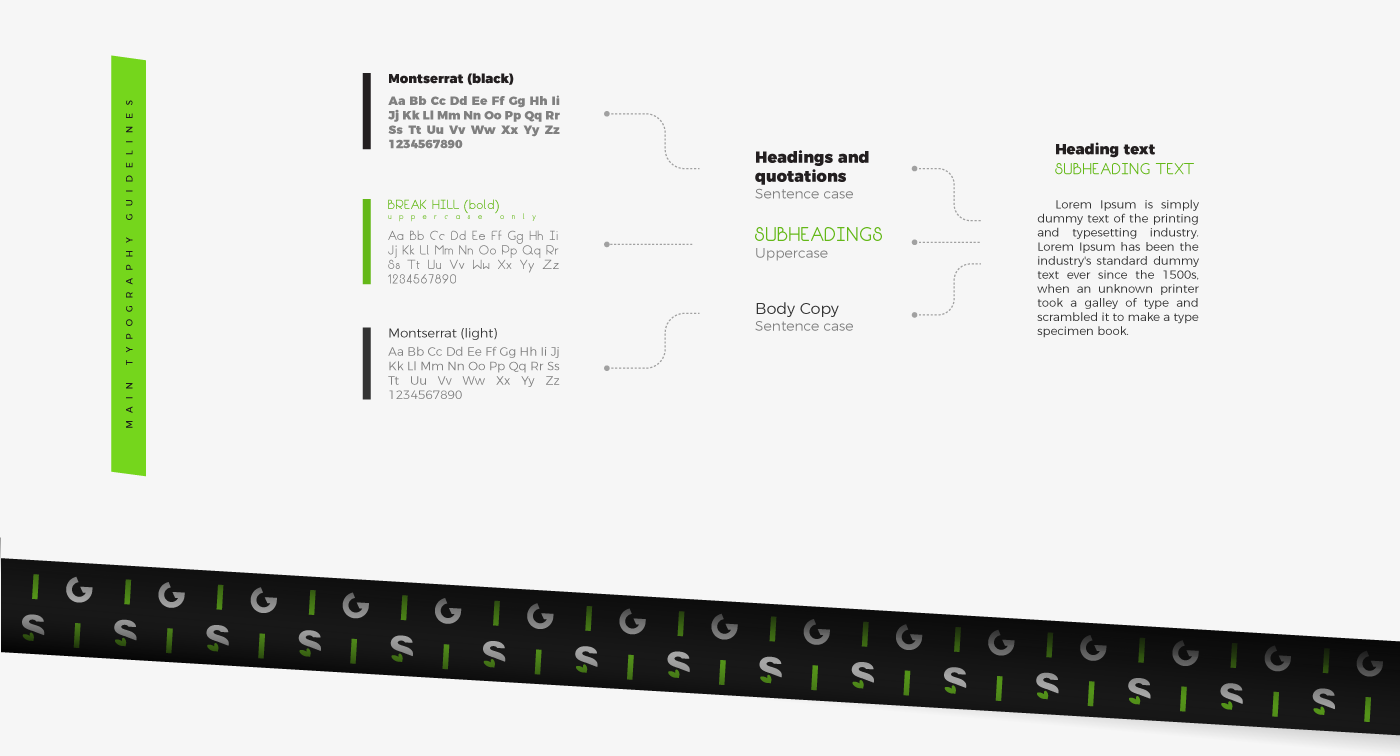 主要的配色方案也在排版中得到了反映。标题采用徽标中字母的深灰色调,小标题在主调色板中具有深绿色,并且正文文本应具有炭灰色阴影。